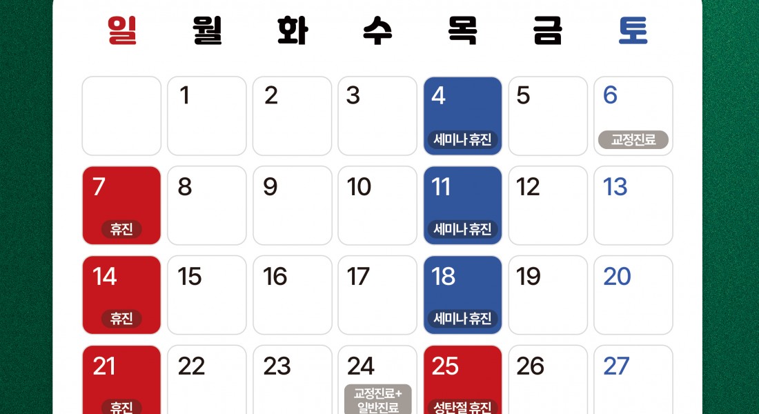 진료일정을 참고하시어 예약 및 내원에 불편함 없으시길 바랍니다.