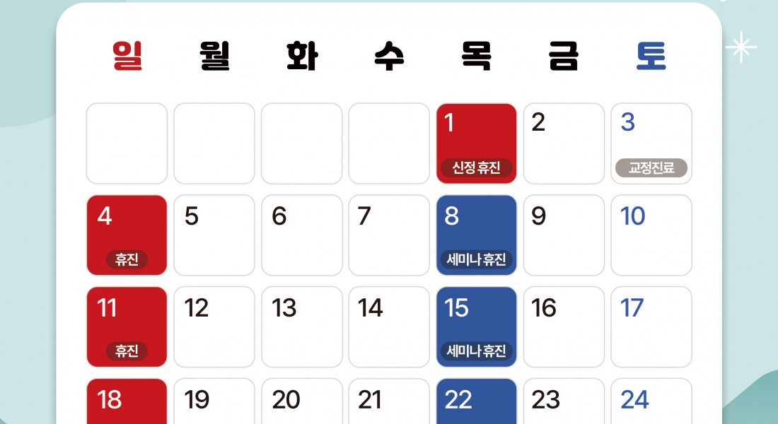 진료일정을 참고하시어 예약 및 내원에 불편함 없으시길 바랍니다.