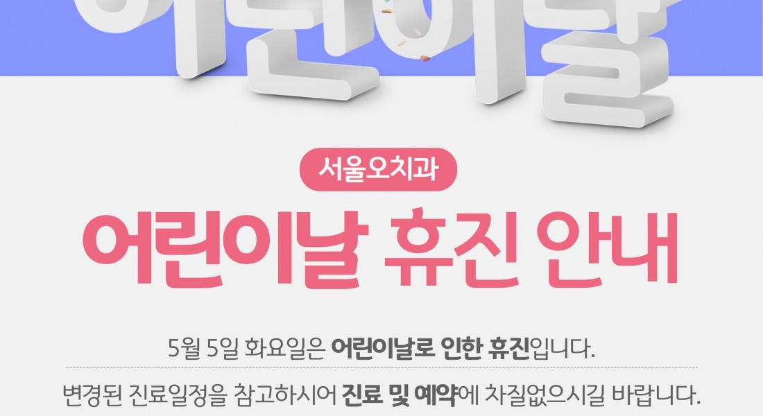 서울오치과는 5/5(화) 어린이날로 인한 휴진입니다.