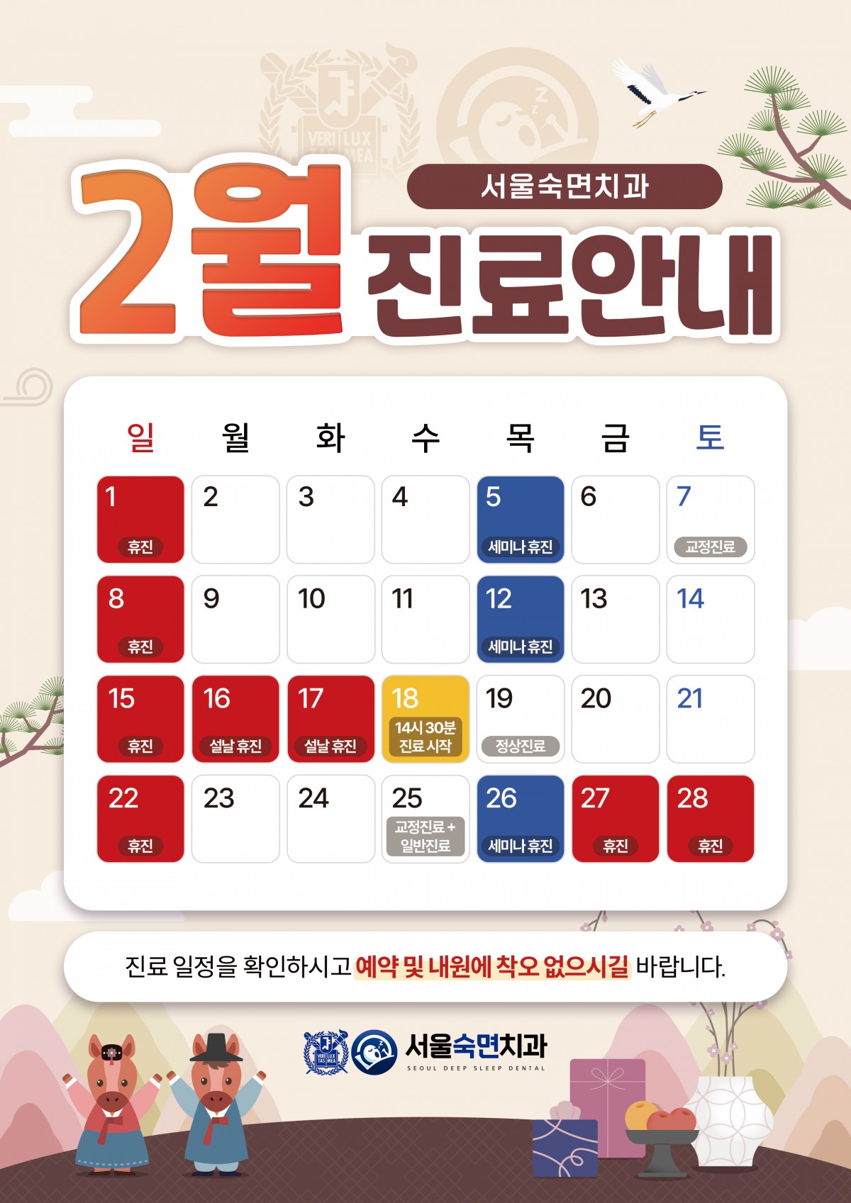 서울숙면치과 2월 진료일정 안내드립니다.